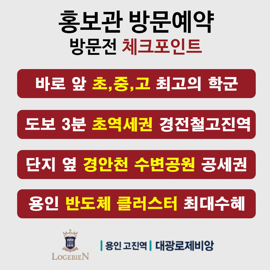 계약금 5%, 중도금무이자 혜택까지 용인 고진역대광로제비앙초,중,고를 품은 역대급 학세권 25년 땅값 상승률 1위 "용인 처인구" 경전철 고진역 도보3분 "초역세권" 경안천 수변공원을 내집정원처럼 방문예약 전화문의 <고진역 대광로제비앙 홍보영상> 용인 고진역 대광로제비앙 관심고객등록(방문예약) 해주시면분양일정,분양가,모델하우스주소 등 자세한 분양정보를 문자 및 전화로 간편하게 받아보실 수 있습니다. 방문,상담은 100% 예약제로 운영중입니다. 아래 관심고객등록(방문예약) 남겨주시거나 대표번호로 전화상담 후 방문부탁드립니다. 방문예약 (관심고객등록)접 수 하 기This field should be left blank